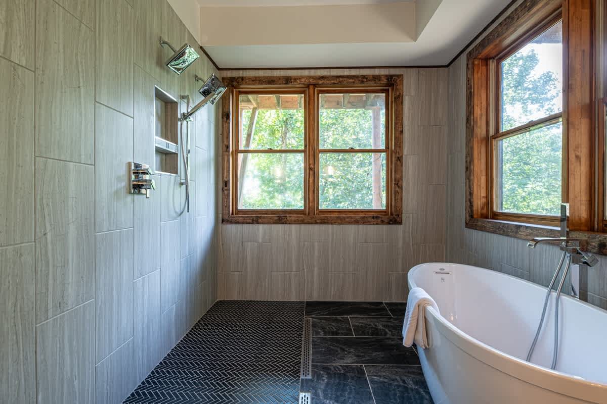 “The master bathroom shower and tub were amazing! Two of the windows in the shower face the woods, so it’s really cool to shower or sit in the bath and enjoy the trees!” - Noelle