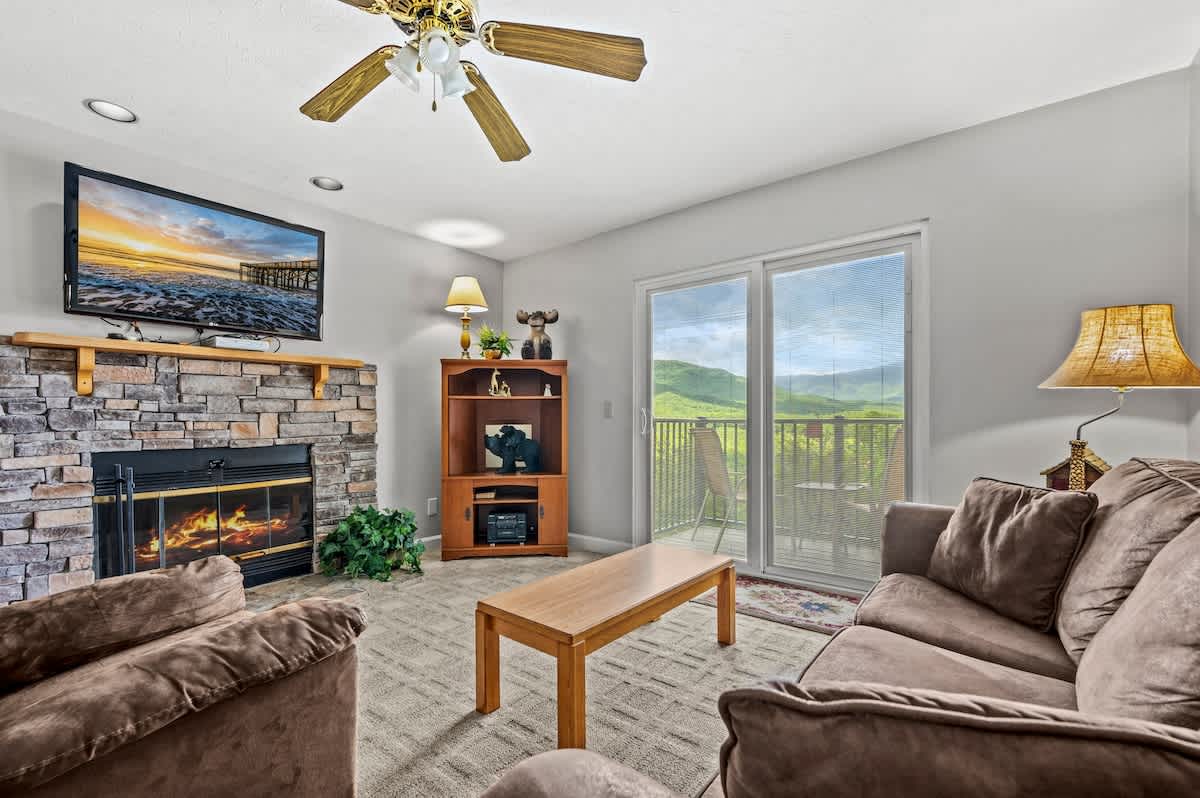 Looking for a getaway space that gives homey, comfy vibes? Misty Views is for you! Enjoy a fully-stocked kitchen ready for making meals, a king size bed, and homey living room inside the condo. You’re also only steps away from the resort’s indoor pool, hot tub, sauna, and steam room!