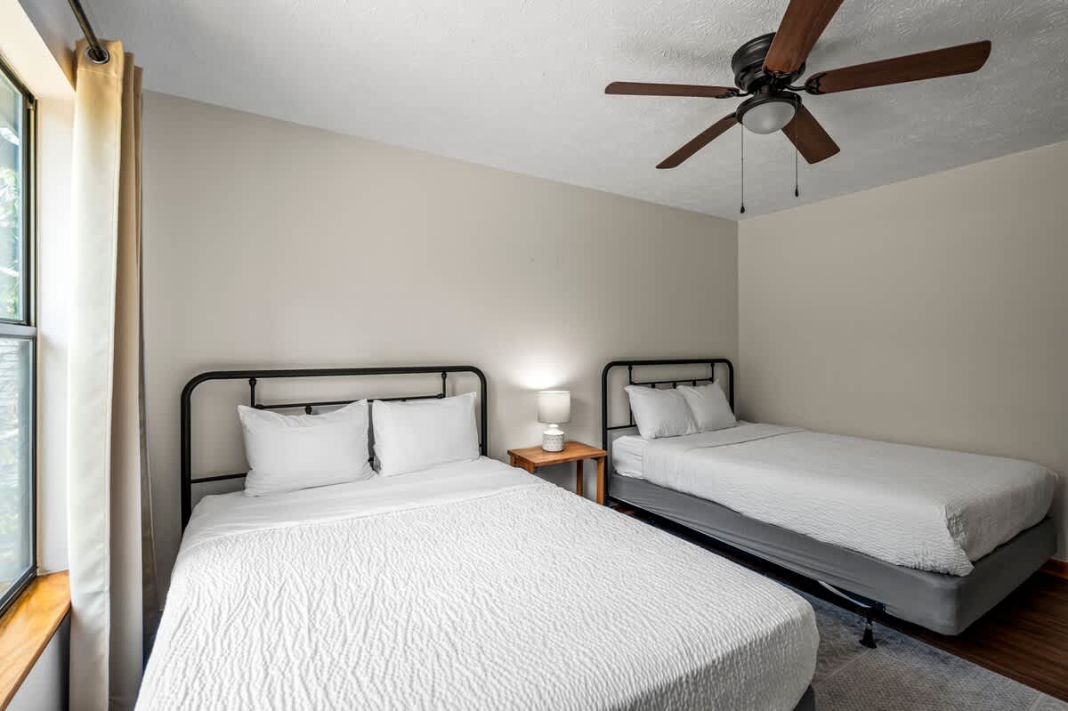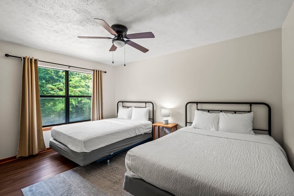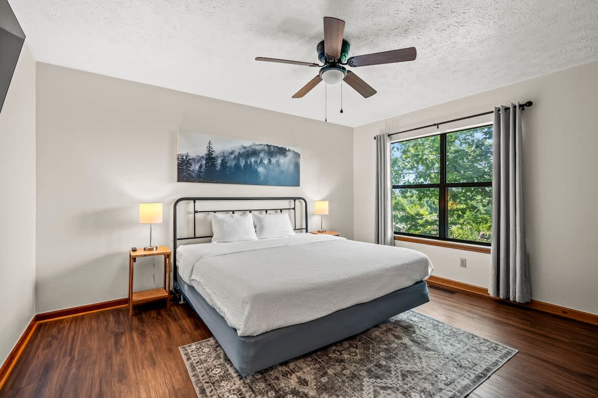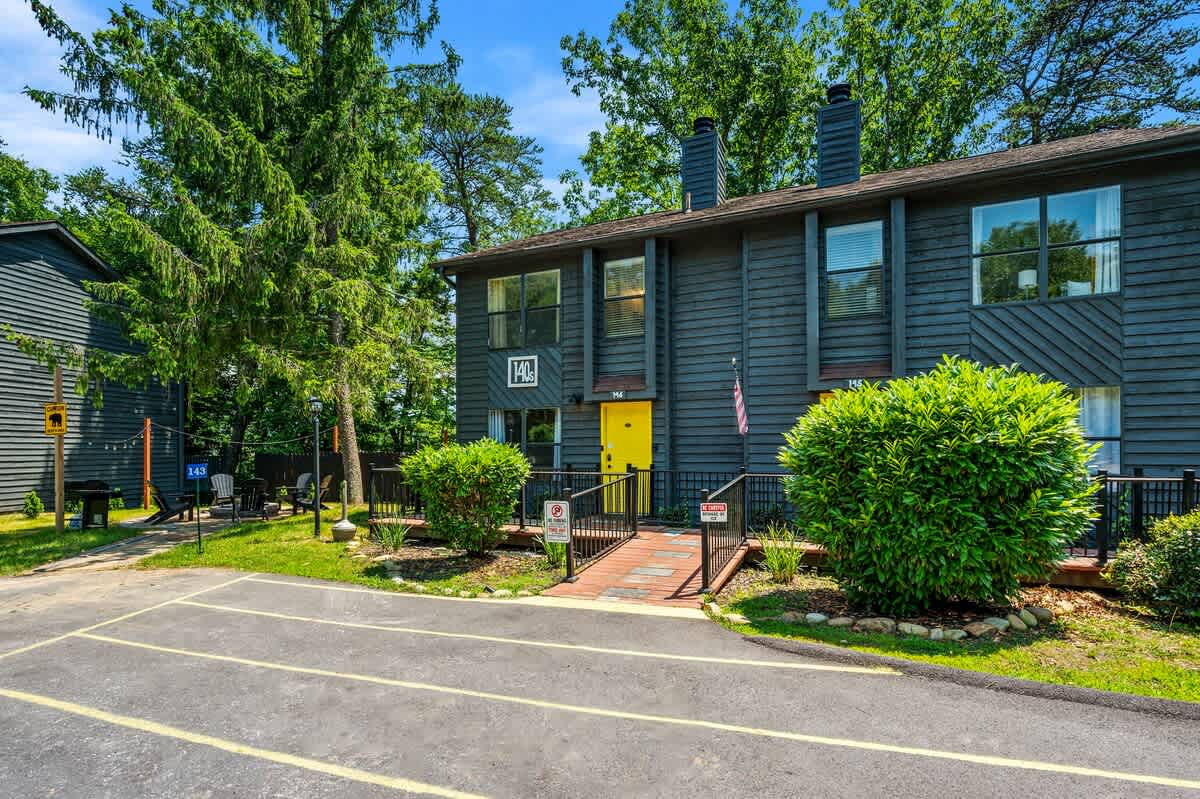 - Access to resort amenities including an indoor pool, fire pit, and grills