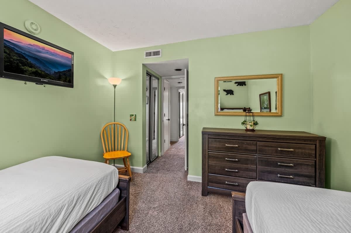 Escape to this charming 2-bedroom, 2-bath condo, nestled in the heart of Deer Ridge Mountain Resort. Enjoy a woodsy retreat with a fully-equipped kitchen, cozy fireplace, & breathtaking views of the Smoky Mountains from the private balcony. The perfect serene getaway with resort amenities including an indoor pool & hot tub!