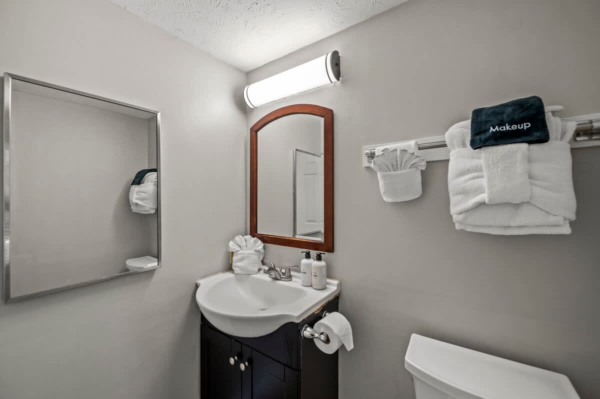 ➜ We provide full bottles of hand soap, body wash, shampoo, conditioner, and lotion in every full bathroom. We also provide ample trash bags for the kitchen & bathrooms. Additionally, we provide a starter set of the following items that you might want to bring or purchase extra, depending on your length of stay: K-Cups, toilet paper, paper towels, dishwasher pods, & laundry pods (for units with washers & dryers).
