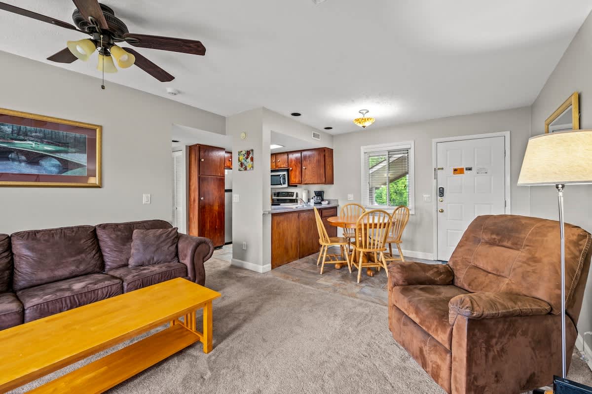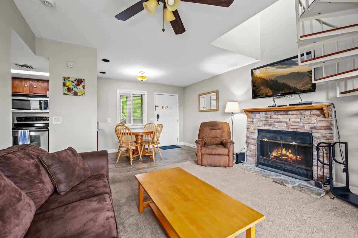 Discover a charming condo nestled in the beauty of the Smoky Mountains, offering breathtaking views! This cozy retreat includes 1 bedroom & bathroom, a loft bedroom, fully equipped kitchen, warm fireplace, and access to a variety of resort amenities. Prepare to unwind and indulge in a tranquil getaway in Gatlinburg, TN.
