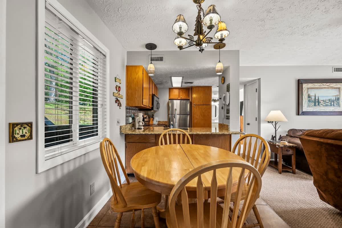 Step into this homey condo and enjoy the close-up mountain views of the GSM National Park! Featuring a fully-stocked kitchen ready for making meals, a king size bed, and cozy living room, it’s the perfect place to make mountain vacation memories.