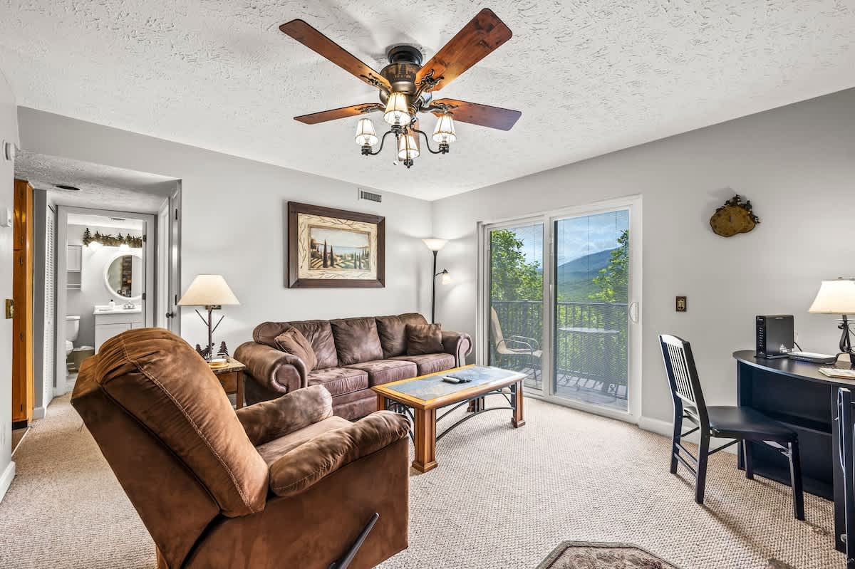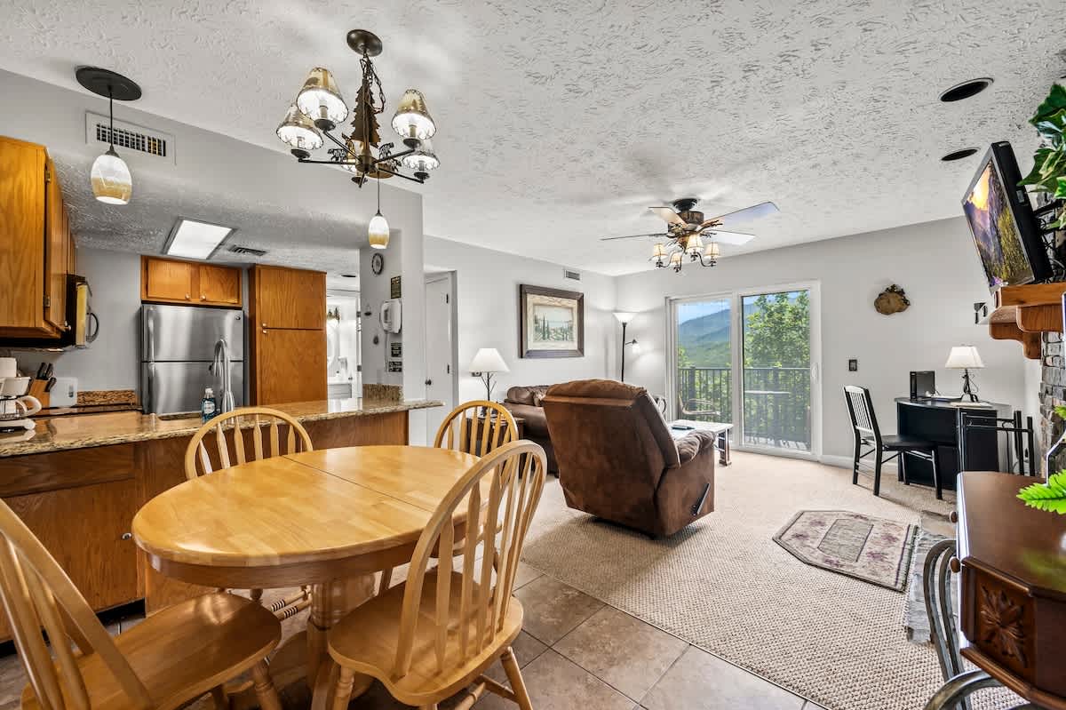 Step into this homey condo and enjoy the close-up mountain views of the GSM National Park! Featuring a fully-stocked kitchen ready for making meals, a king size bed, and cozy living room, it's the perfect place to make mountain vacation memories.
